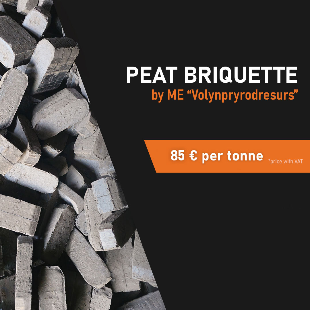 ME Volynpryrodresurs offers to buy bulk peat briquettes at a price of 85 € per tonne with loading onto the buyer’s vehicle.