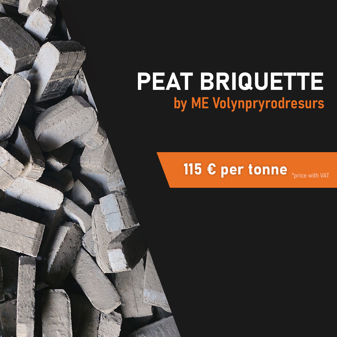 ME Volynpryrodresurs offers to buy bulk peat briquettes at a price of 115 € per tonne with loading onto the buyer’s vehicle.