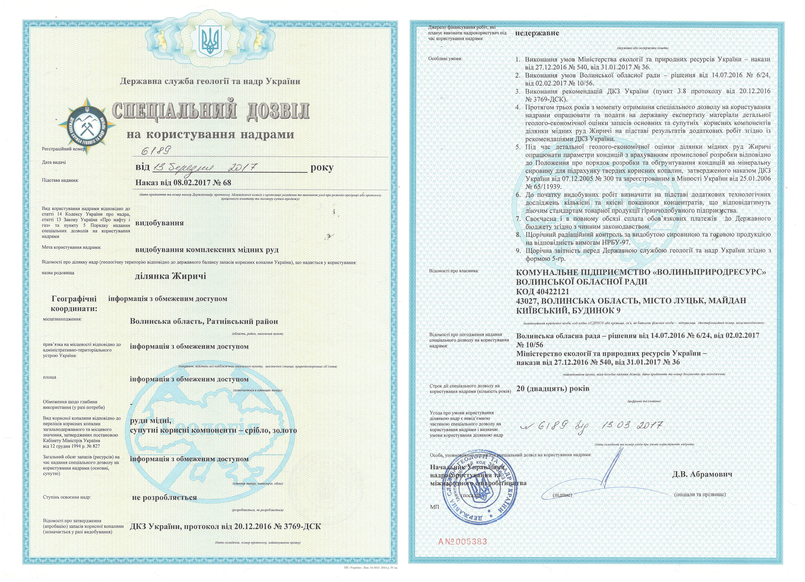 Спеціальний дозвіл №6189 (ділянка Жиричі) – загальна площа 3 140 га.