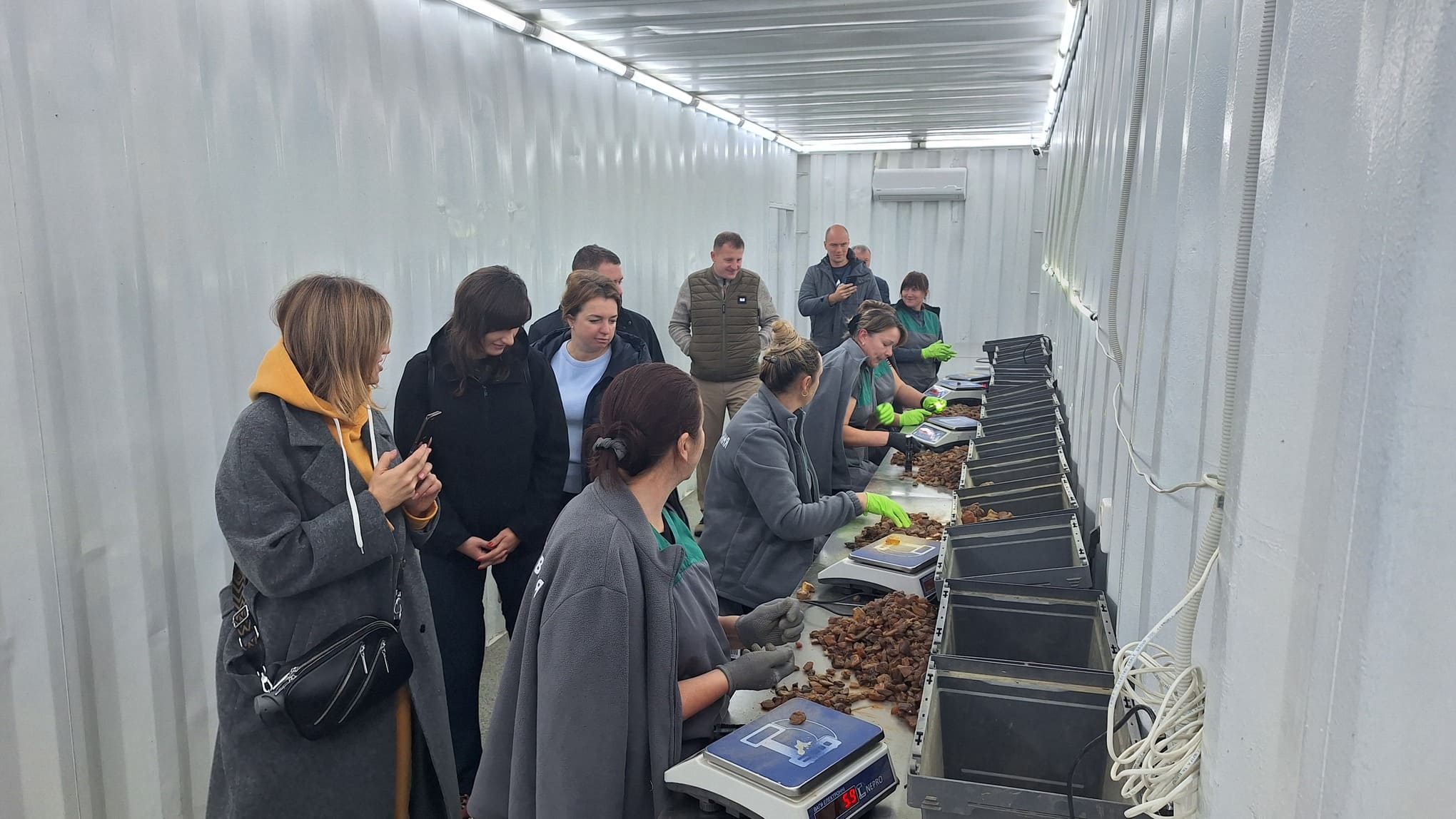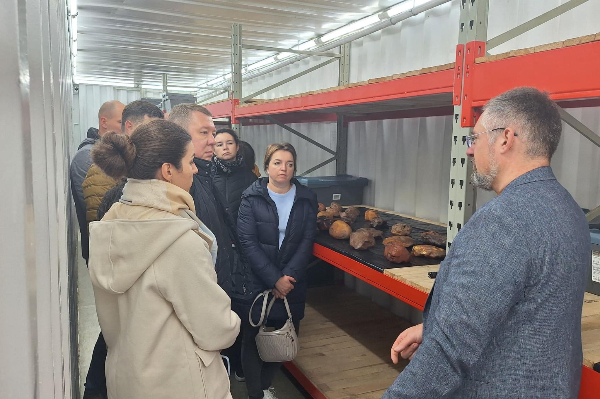 Під час візиту Анатолій Капустюк детально ознайомив гостей із технологічним процесом промивки, сортування та зберігання бурштину. Він зазначив, що вилучений у процесі промивки бурштин-сирець сортується за фракціями та групами якості відповідно до Класифікатора Державного гемологічного центру Міністерства фінансів України (ДКДК ISSN 2079-1186, вересень 2025 року). Після цього камінь надходить до спеціально обладнаних сховищ, де забезпечується його збереження в оптимальних умовах.