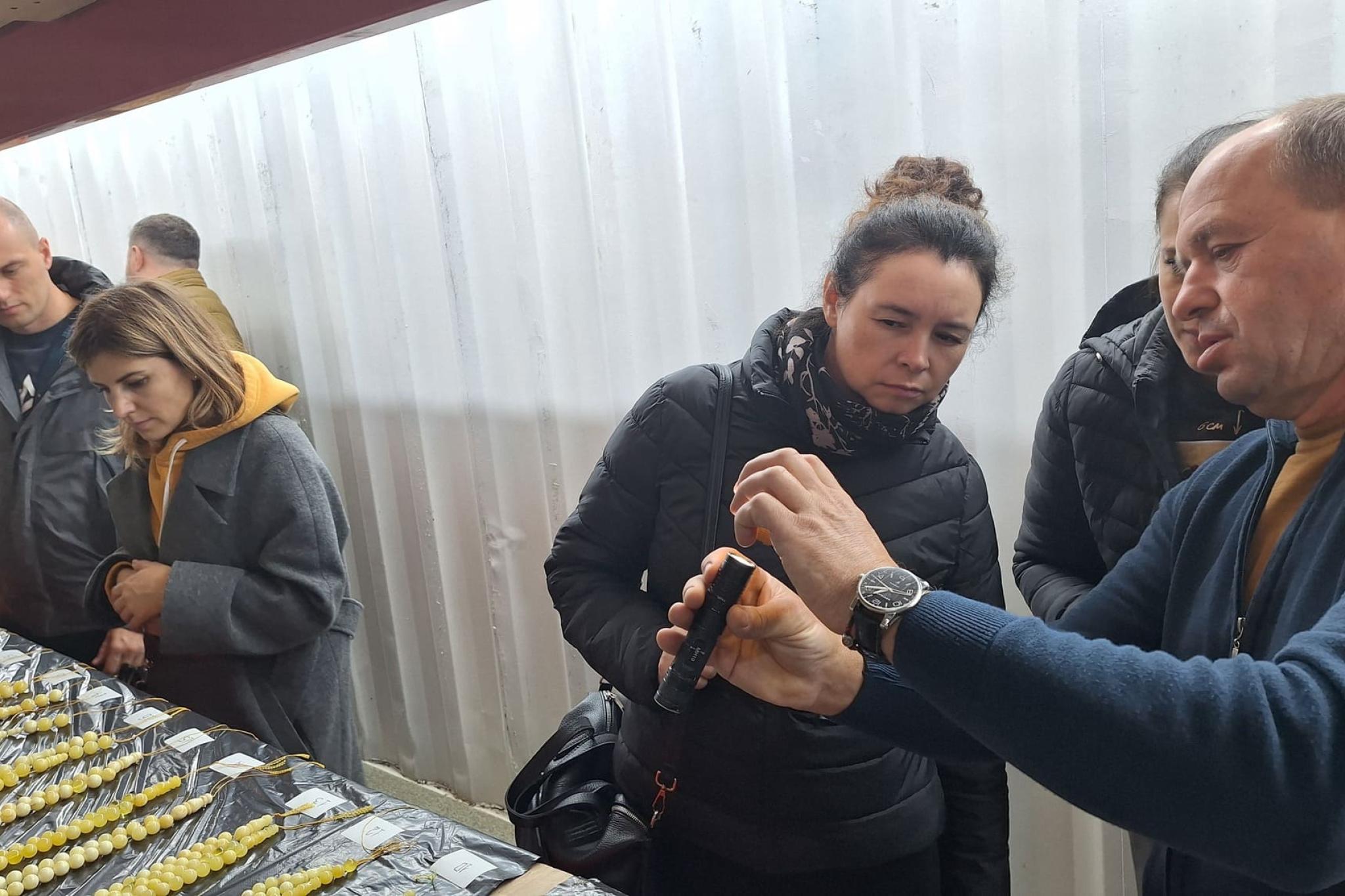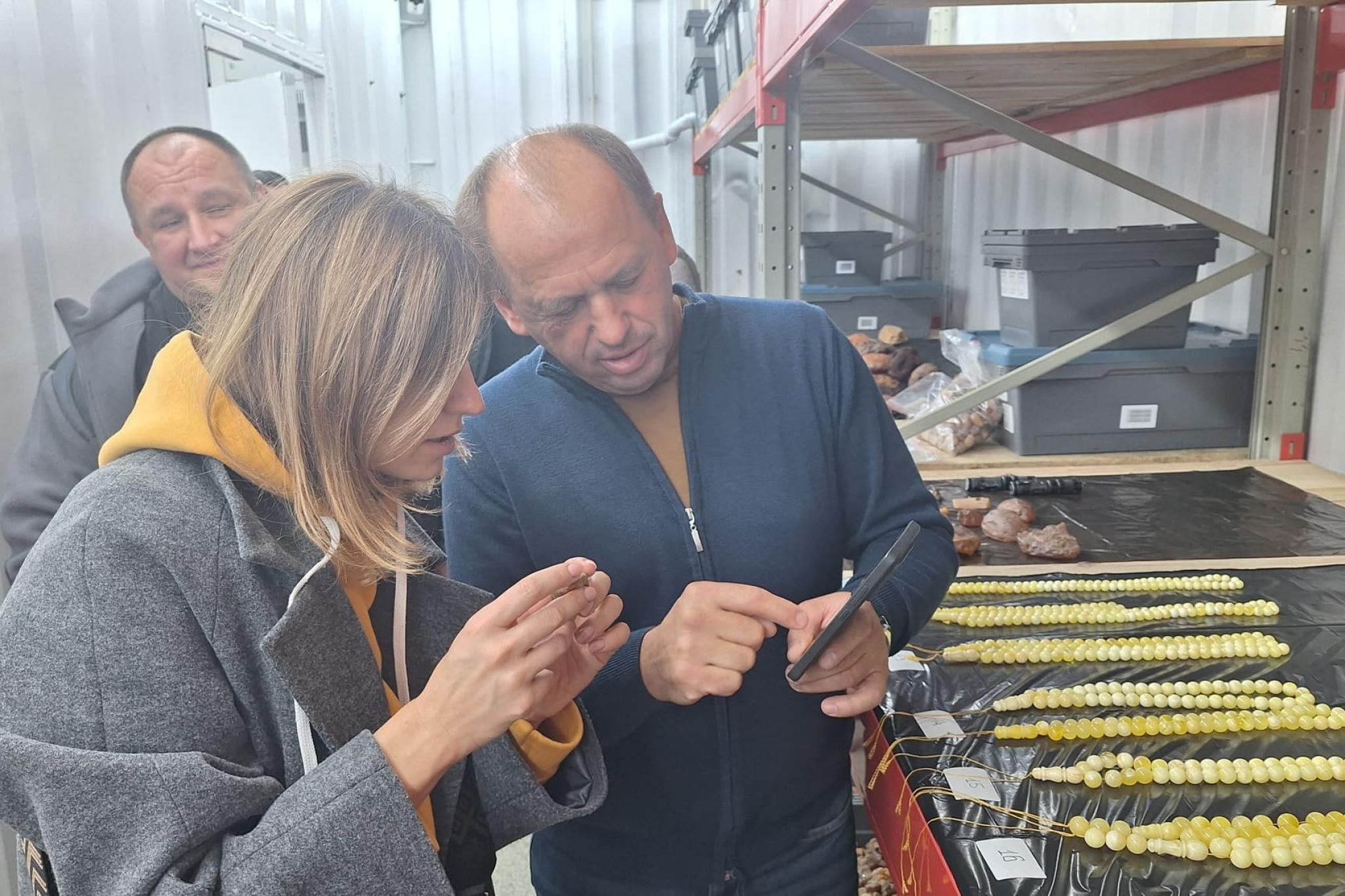 Під час огляду зразків готової продукції особливу увагу гостей привернули намиста та прикраси з бурштину різних відтінків – від класичного медового до рідкісного молочно-білого кольору. Серед експонатів були також вироби з унікальними включеннями та навіть намистини з бурштином, у якому видно крупинки піску, що створює природний неповторний малюнок каменю. Такі зразки доводять: кожен шматочок бурштину має власний характер і красу, незалежно від кольору чи прозорості, адже саме природна різноманітність робить волинський бурштин особливо цінним і впізнаваним.