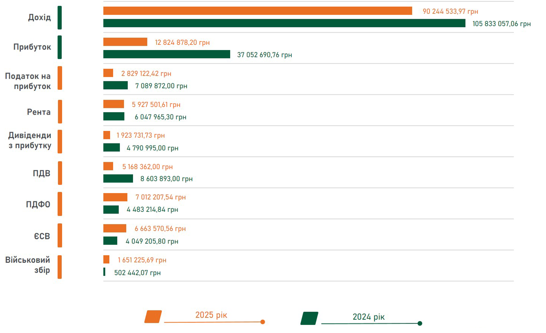 Порівняння фінансово-господарських показників 2025 та 2024 років