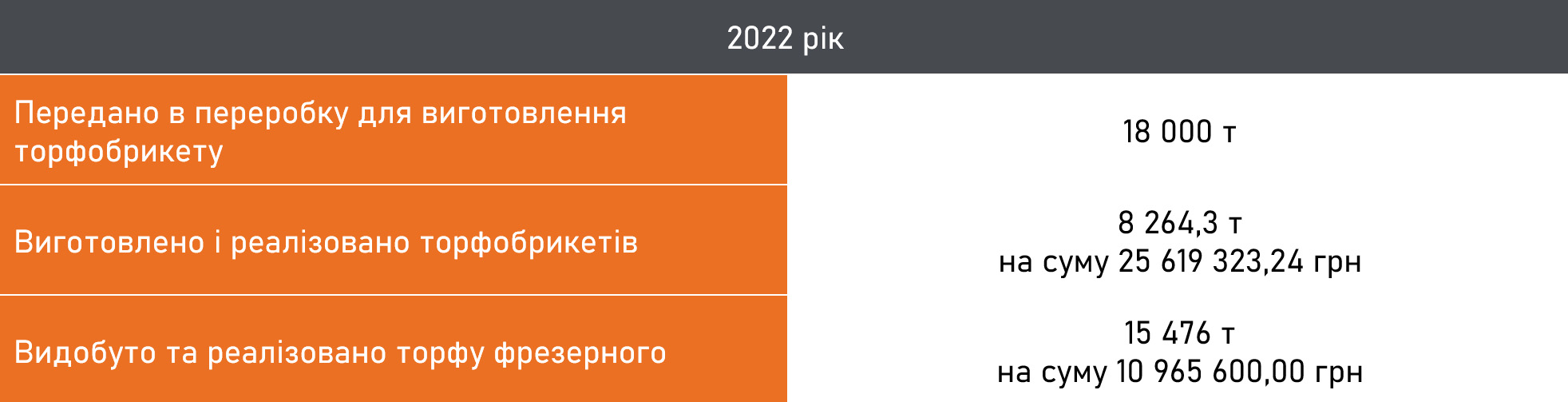 Реалізація торфу та торфобрикету, дохід від реалізації