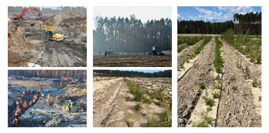 Mining-technical and biological reclamation are essential for worked-out territories. Upon completion of extraction, ME "Volynpryrodresurs" restores the site to its natural state: the quarry area is backfilled with overburden and the fertile layer is returned, into which seedlings are planted.