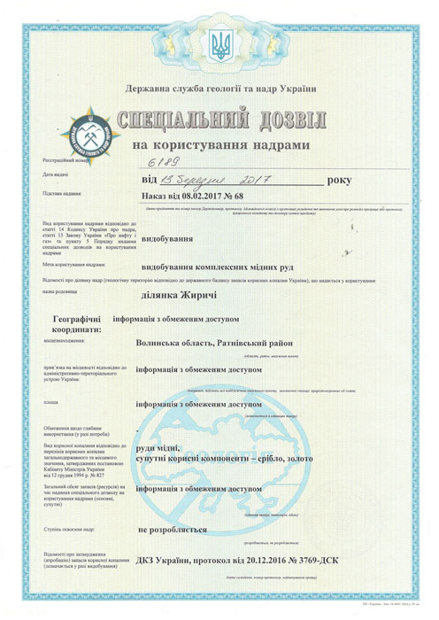 Спеціальний дозвіл №6189 (ділянка Жиричі) – загальна площа 3 140 га.