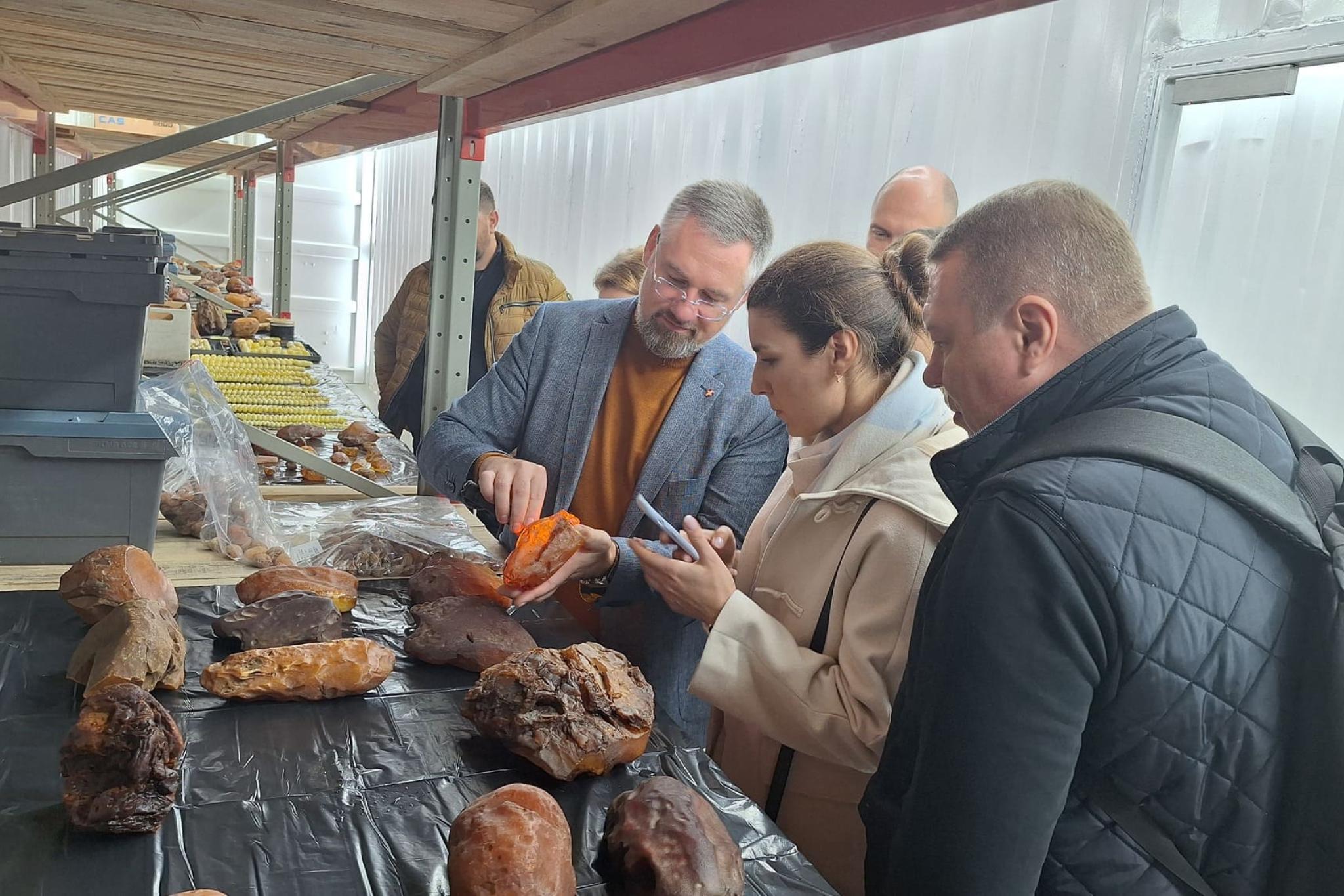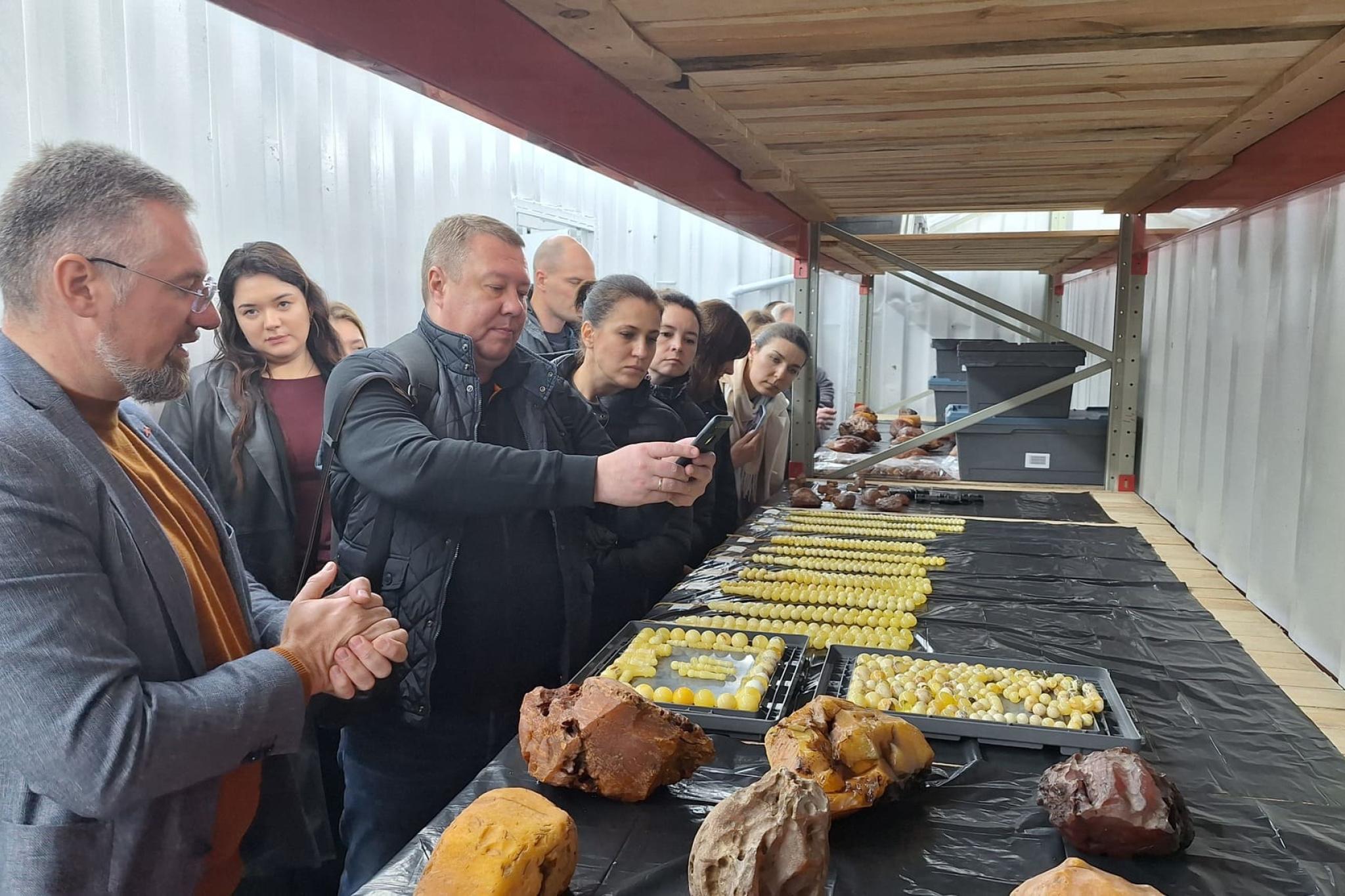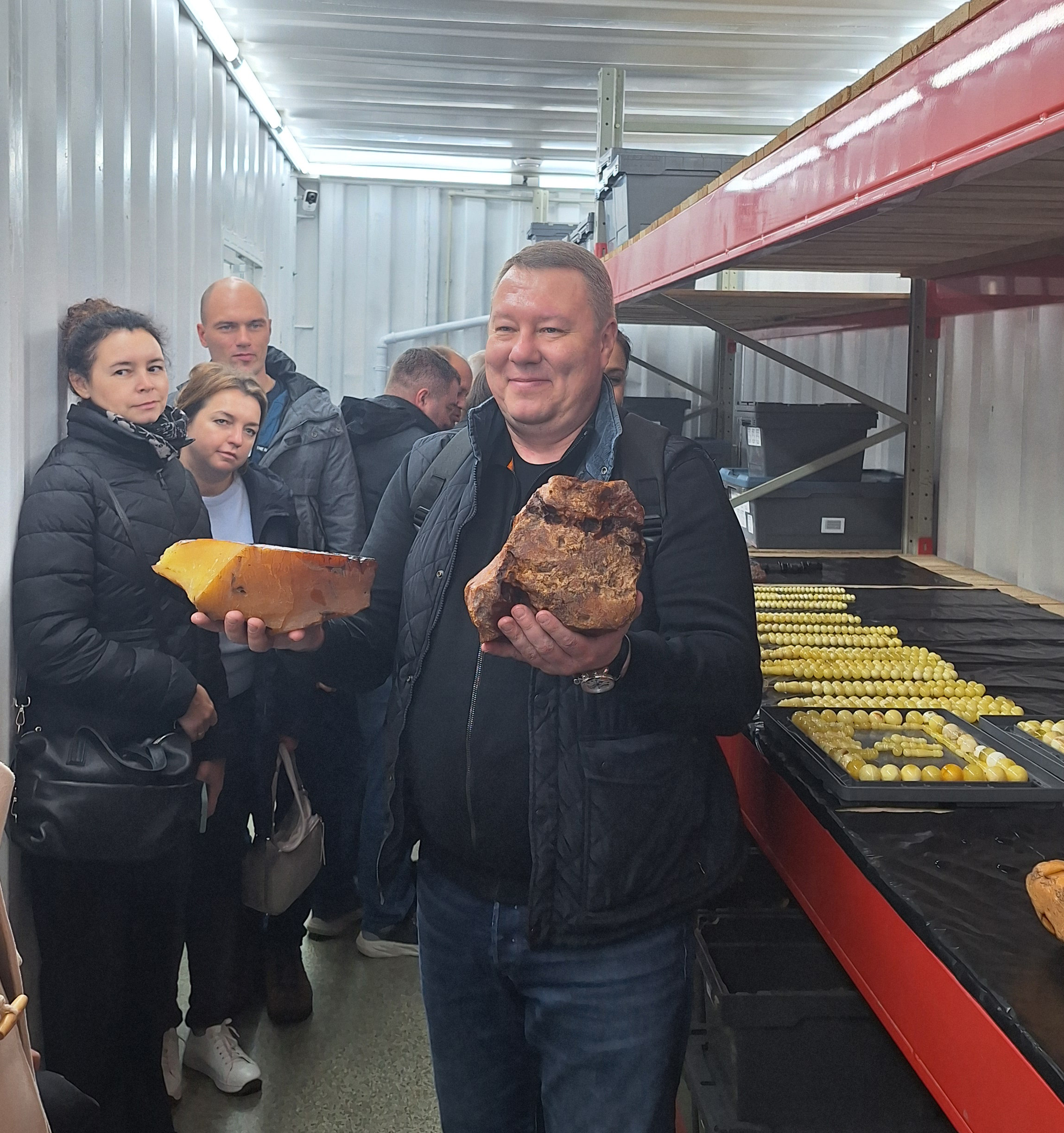 Під час візиту Анатолій Капустюк детально ознайомив гостей із технологічним процесом промивки, сортування та зберігання бурштину. Він зазначив, що вилучений у процесі промивки бурштин-сирець сортується за фракціями та групами якості відповідно до Класифікатора Державного гемологічного центру Міністерства фінансів України (ДКДК ISSN 2079-1186, вересень 2025 року). Після цього камінь надходить до спеціально обладнаних сховищ, де забезпечується його збереження в оптимальних умовах.