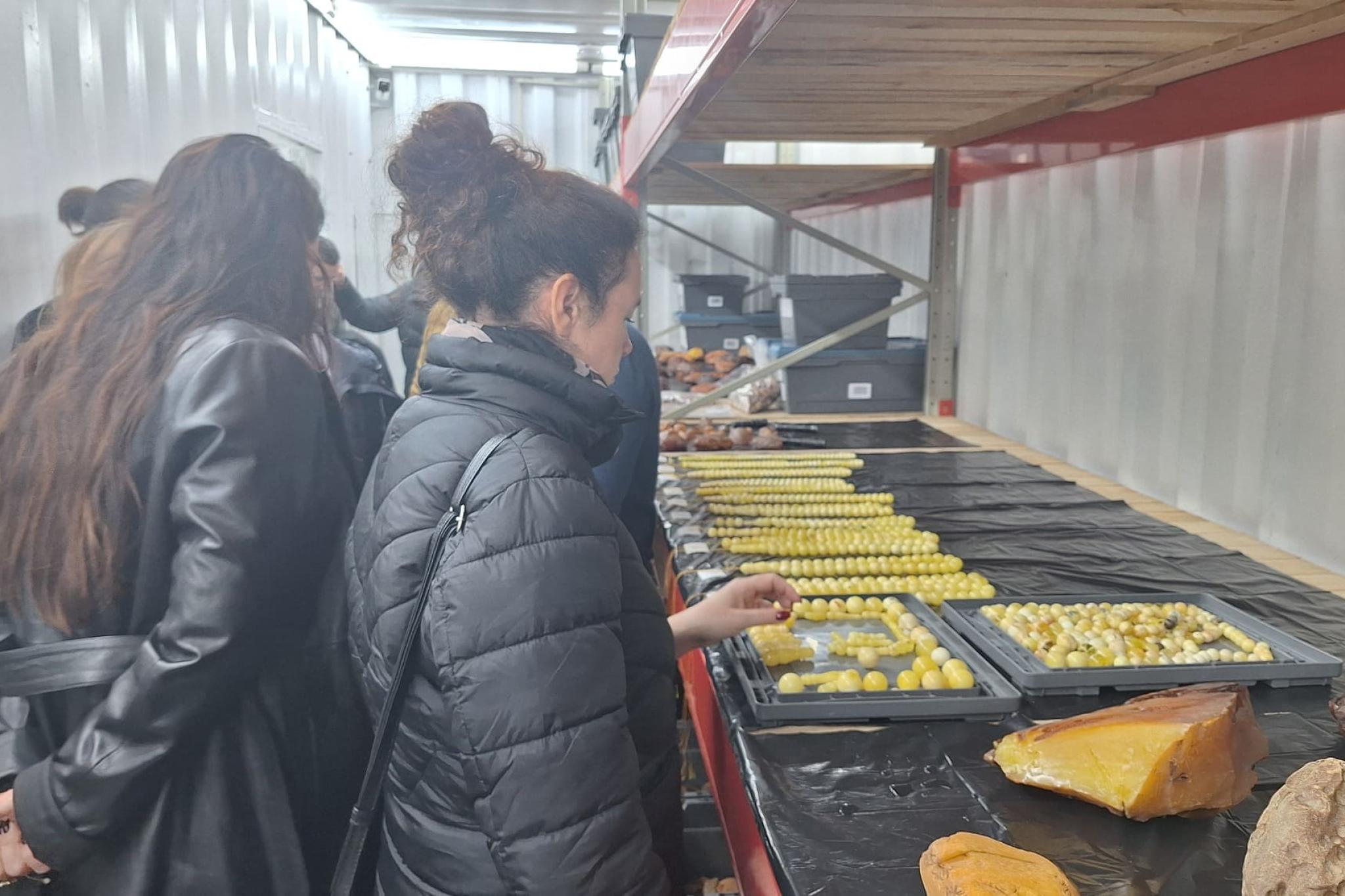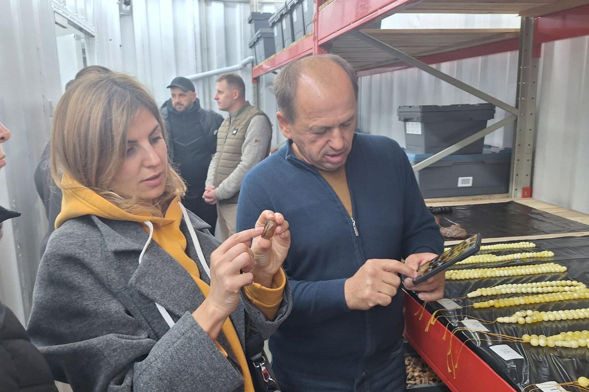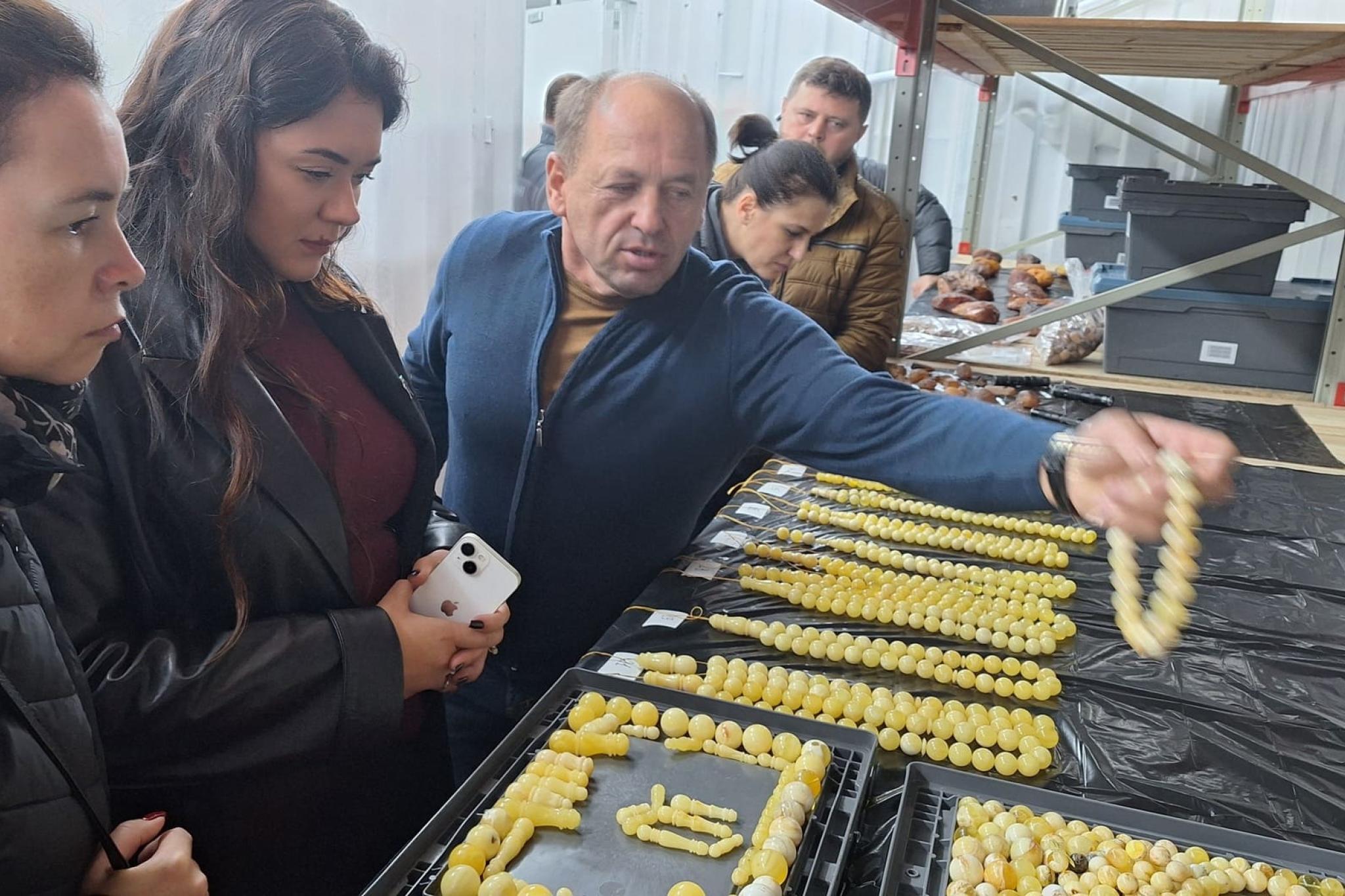 Під час огляду зразків готової продукції особливу увагу гостей привернули намиста та прикраси з бурштину різних відтінків – від класичного медового до рідкісного молочно-білого кольору. Серед експонатів були також вироби з унікальними включеннями та навіть намистини з бурштином, у якому видно крупинки піску, що створює природний неповторний малюнок каменю. Такі зразки доводять: кожен шматочок бурштину має власний характер і красу, незалежно від кольору чи прозорості, адже саме природна різноманітність робить волинський бурштин особливо цінним і впізнаваним.