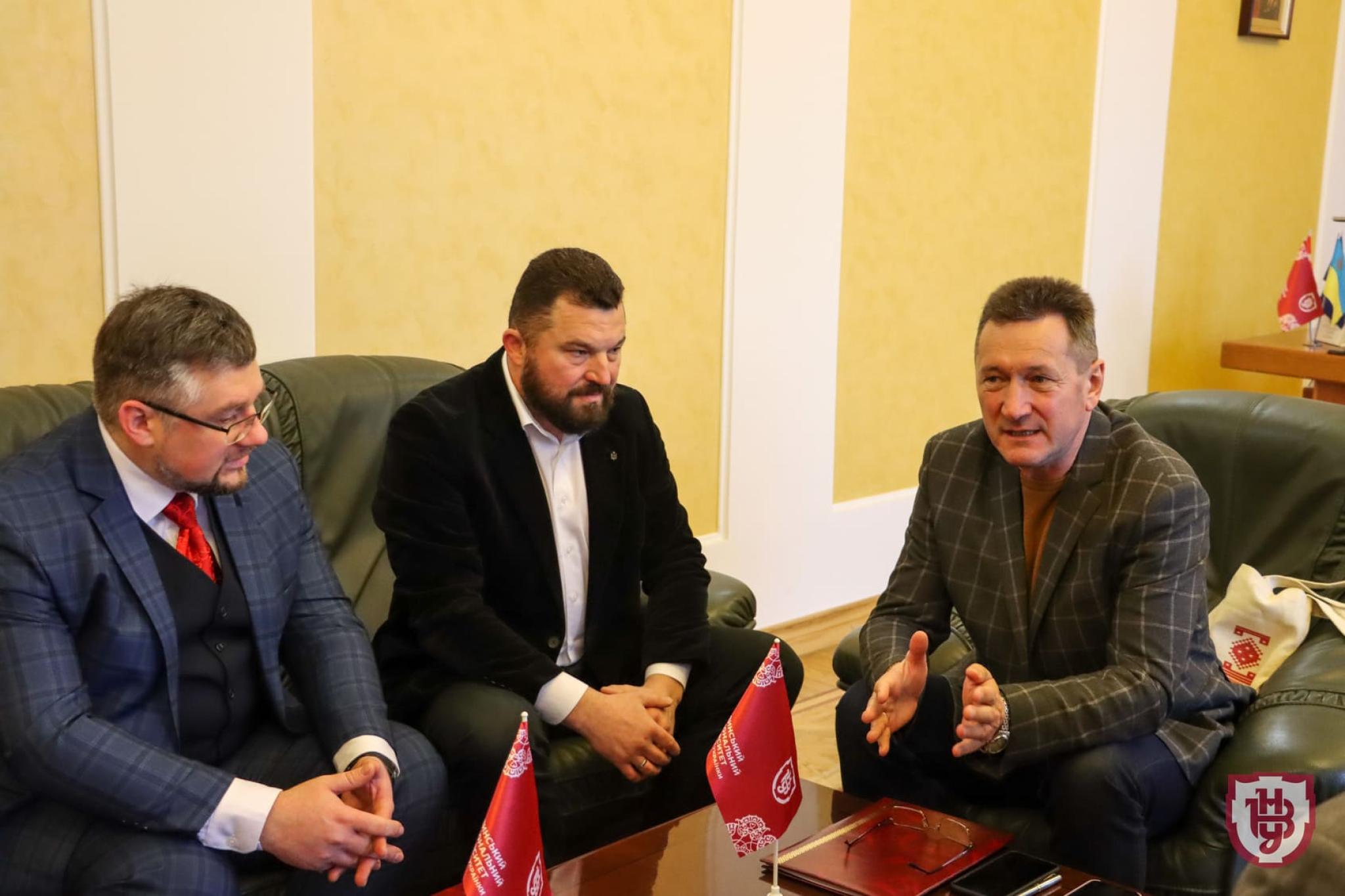 На зустрічі були присутні ректор ВНУ імені Лесі Українки Анатолій Цьось, проректор з навчально-виховної роботи та комунікації Наталія Благовірна, директор КП «Волиньприродресурс» Анатолій Капустюк, декан географічного факультету Юрій Барський і викладачі кафедри геодезії, землевпорядкування та кадастру.