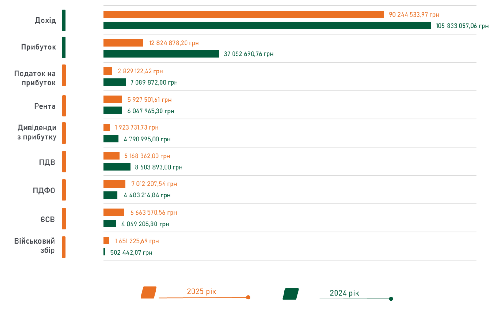 Порівняння фінансово-господарських показників 2025 та 2024 років